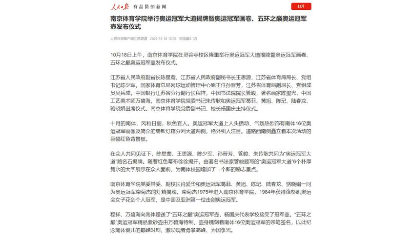 新华日报:讲好奥运夺冠故事,办好“世界冠军摇篮”