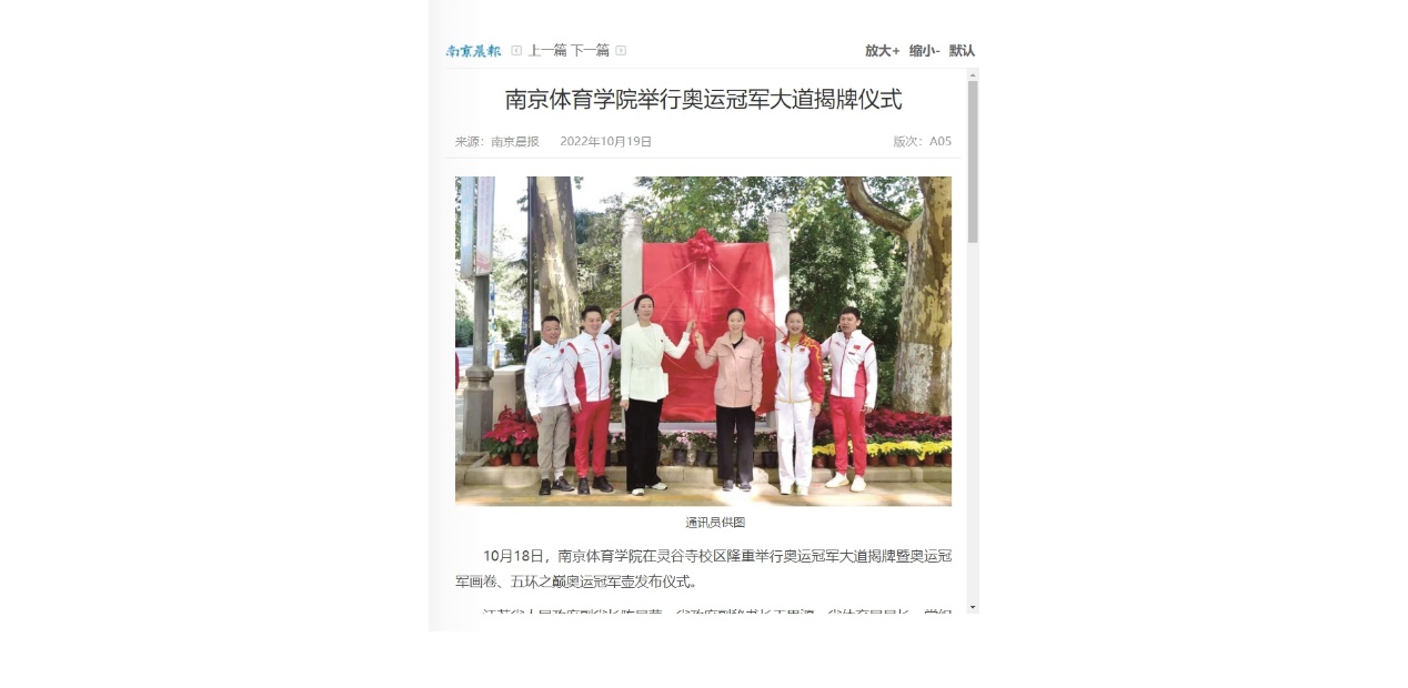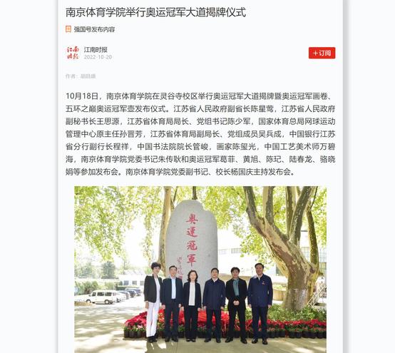 南京晨报:36365最新线路检测中心举行奥运冠军大道揭牌仪式