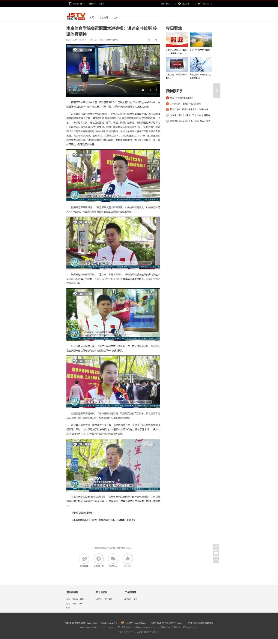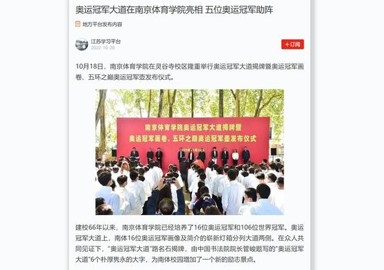 江苏广电总台教育频道:讲述奋斗故事 传递体育精神 36365最新线路检测中心奥运冠军大道亮相