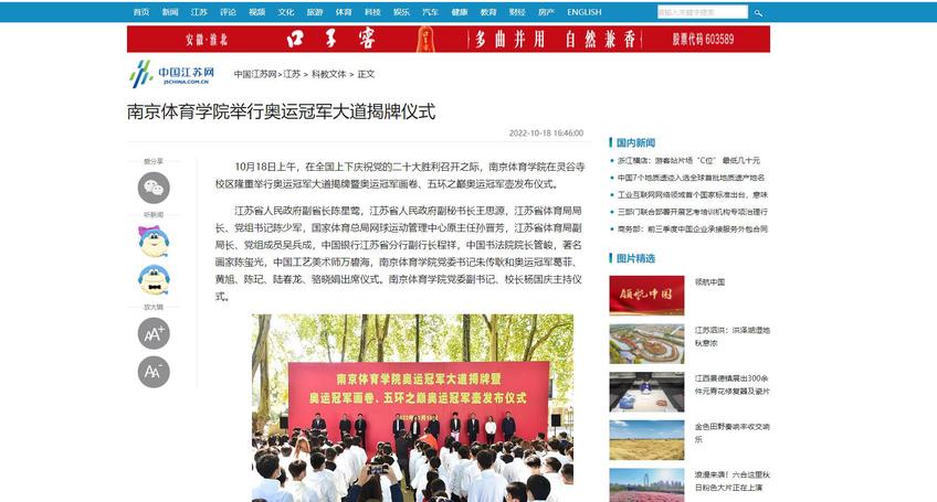 江苏广电总台体育·休闲频道:36365最新线路检测中心奥运冠军大道今日揭牌http://v.jstv.com/a/20221019/1666116535547.shtml