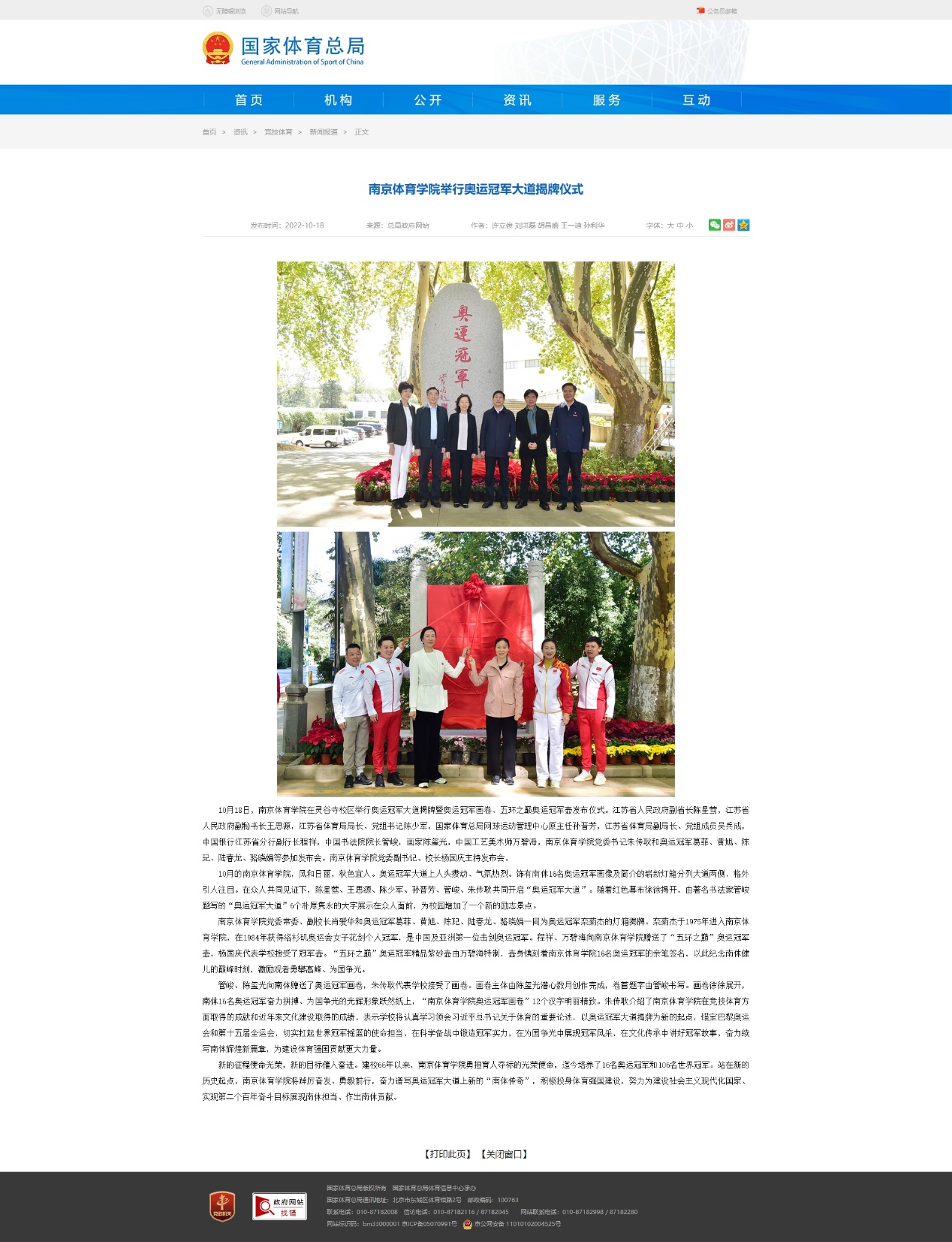国家体育总局网站:36365最新线路检测中心举行奥运冠军大道揭牌仪式