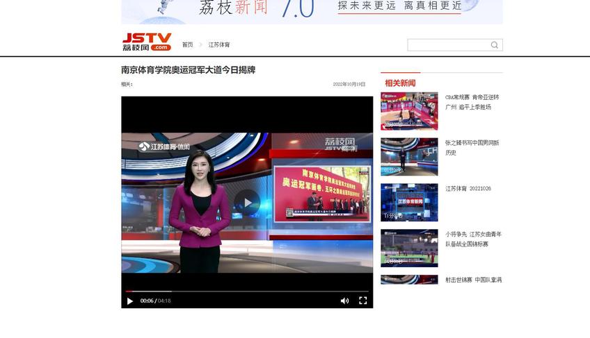 江苏广电总台公共·新闻频道(荔枝网):36365最新线路检测中心奥运冠军大道亮相:讲述奋斗故事 传递体育精神
