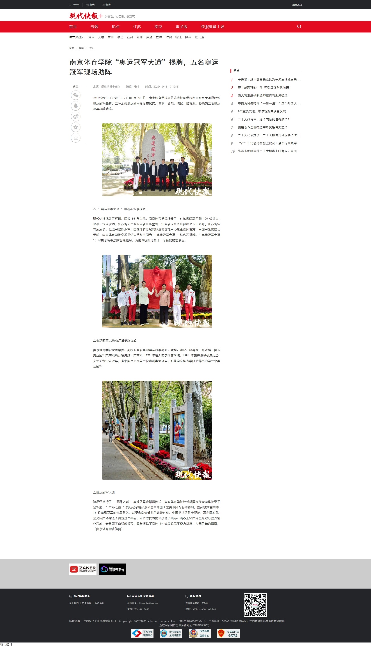 现代快报:36365最新线路检测中心“奥运冠军大道”揭牌,五名奥运冠军现场助阵
