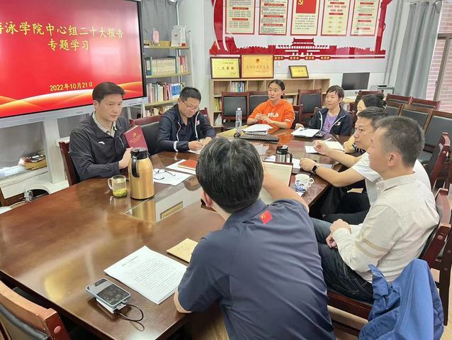 王伟新强调,游泳学院各级党组织和全体党员群众要把学习宣传贯彻党的二十大精神作为当下首要的政治任务,通过学习党的二十大精神,指导我们的工作,踔厉奋发、勇毅前行,以实际行动做好奥运会和全运会备战工作,推动游泳学院事业不断取得新发展和新成绩,为实现党的二十大确立的宏伟目标团结奋斗。