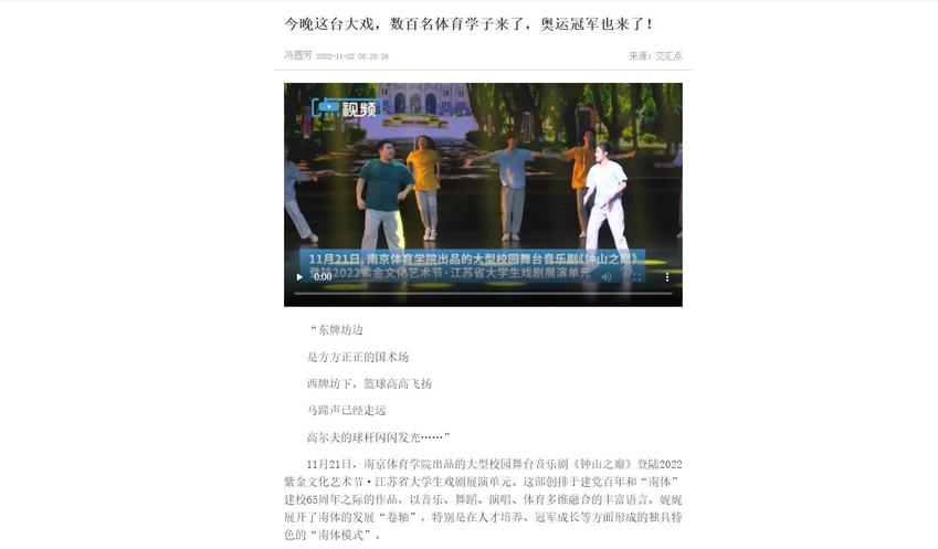 紫金文艺:这台精彩大戏,数百名体育学子来了,奥运冠军也来了!