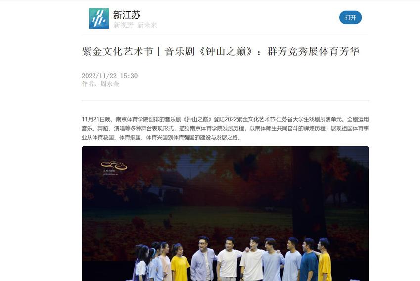 江苏公共·新闻频道:音乐剧《钟山之巅》亮相2022紫金文化艺术节