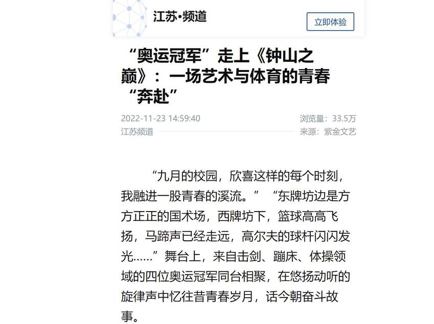 新华社客户端:“奥运冠军”走上《钟山之巅》:一场艺术与体育的青春“奔赴”
