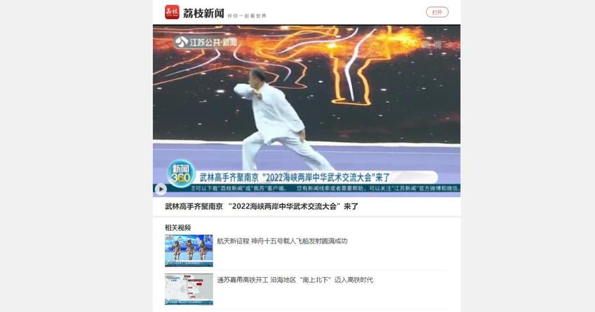 江苏公共·新闻频道:武林高手齐聚南京 “2022海峡两岸中华武术交流大会”来了
