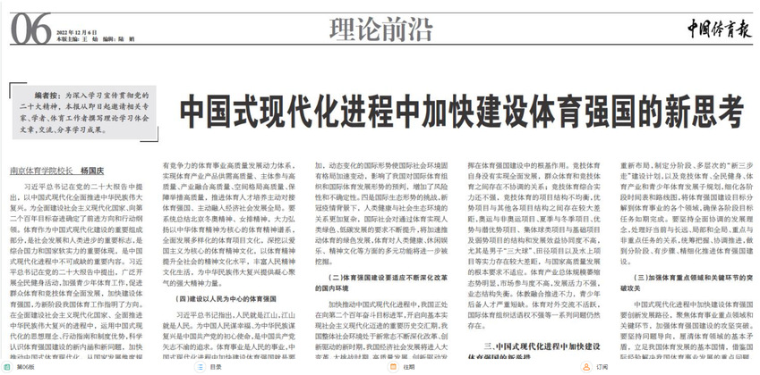 【中国体育报】中国式现代化进程中加快建设体育强国的新思考