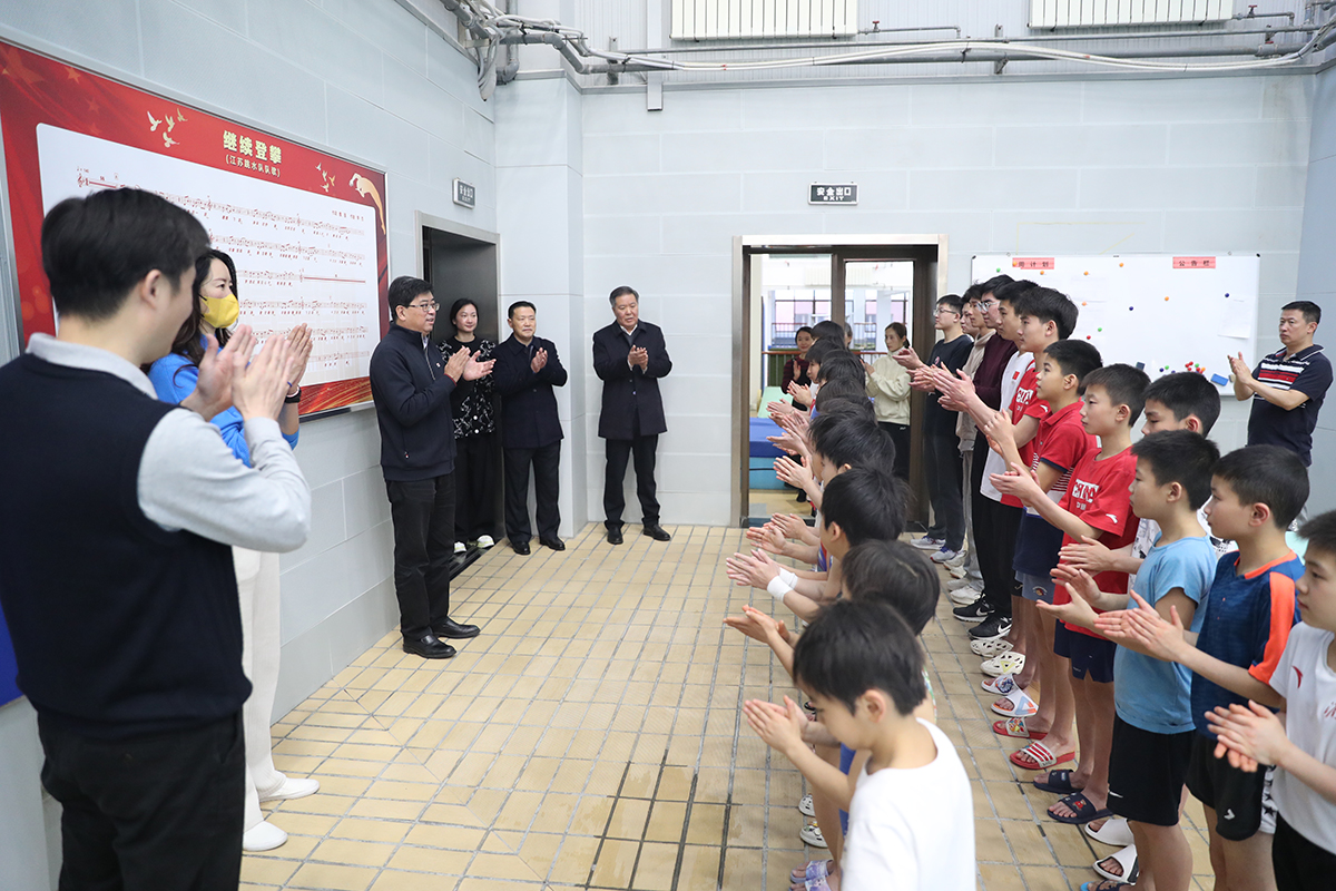 1月27日(大年初六)上午,校党委书记朱传耿,校党委副书记、校长杨国庆,校党委常委、副校长金松、肖爱华到训练场馆,看望慰问节后返校训练的优秀运动队。校领导一行先后来到体操队、蹦床队、击剑队、羽毛球队、跳水队、花样游泳队、游泳队、网球队、乒乓球队、艺术体操队和技巧队等队伍,向全体运动员、教练员和管理干部致以新春的问候与祝福,对从严、从实、从紧抓好2023年训练竞赛工作提出了新希望与新要求。