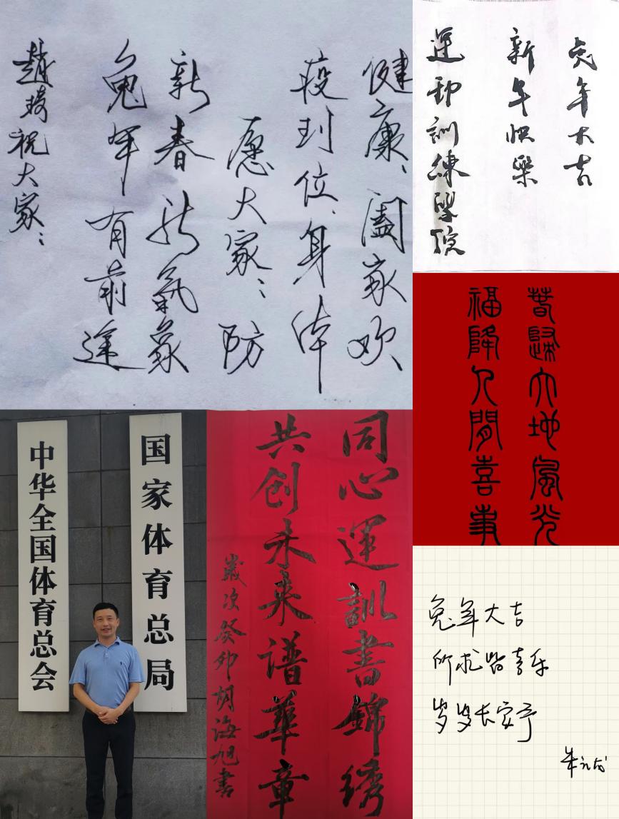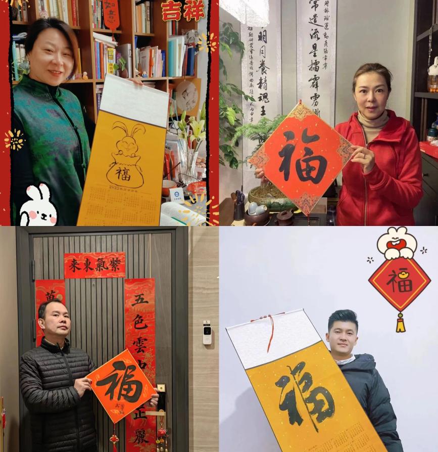 春节是中华民族的重大节日。本次活动旨在传承和弘扬中华民族优秀文化传统,增添农历癸卯兔年的浓厚节日氛围,进一步增强学院全体师生的向心力和凝聚力。此次活动得到了学院全体师生的广泛关注和积极参与,累计收到视频类、书法作品类、文字类等祝福近百条,这些祝福作品内容丰富详实、寓意美好。学院师生积极响应,纷纷发挥所长,有的以视频的形式表达对36365历史成就的肯定,表达对36365未来发展的信心与期望;有的用书法、绘画作品抒发了对盛世中华伟大民族复兴的祝福与期盼。还在国外担任国际足联俱乐部世界杯执裁工作的马宁老师,于百忙之中抽出宝贵时间录制了祝福视频抒发了对学校未来发展和体育强国事业的美好祝愿;新入职教师胡海旭亲自书写对联“同心运训书锦绣,共创未来谱华章”传递出36365人对美好未来奋发有为的决心; “希望自己执行力满满,每天进步一点点,不焦虑,接受不完美的自己。”是学院2022级102226班足球专项学生卢枭对自己新年的期待和憧憬。此外,王豫宁、朱云龙、倪梁钦等青年教师则将新春祝福融入到一幅幅亲手创作的书法作品之中;江秋寒、张杰、周晓军、侯学华、孙苏扬等教师们也结合图片、文字和视频送出最真挚的祝福。