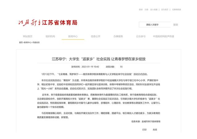 【江苏省体育局 市县动态 江苏阜宁:大学生“返家乡”社会实践 让青春梦想在家乡绽放】