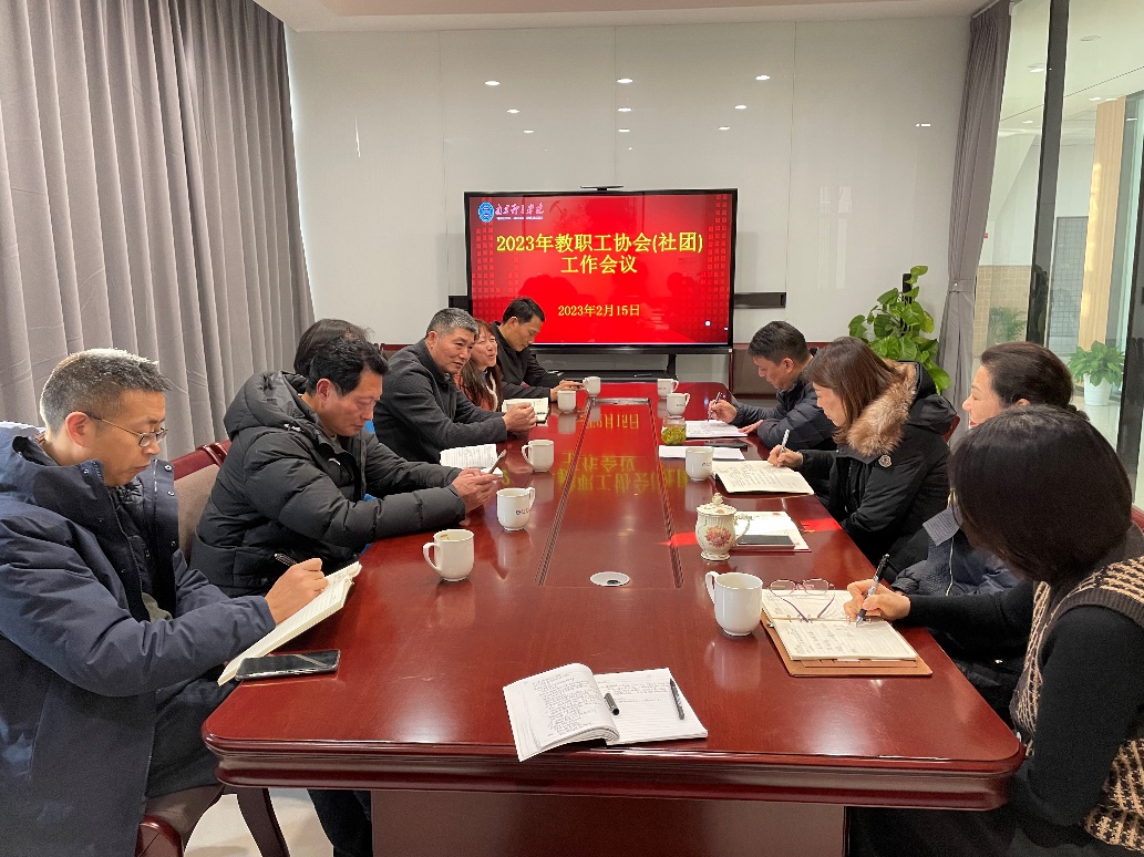 2月15 日下午,校工会在职工之家召开2023年教职工协会(社团)工作会议。校棋牌协会、健身走协会、羽毛球协会、篮球协会、网球协会、乒乓球协会、36365朗诵团共7个协会(社团)会长、秘书长参加会议。会议由校工会主席张健主持。