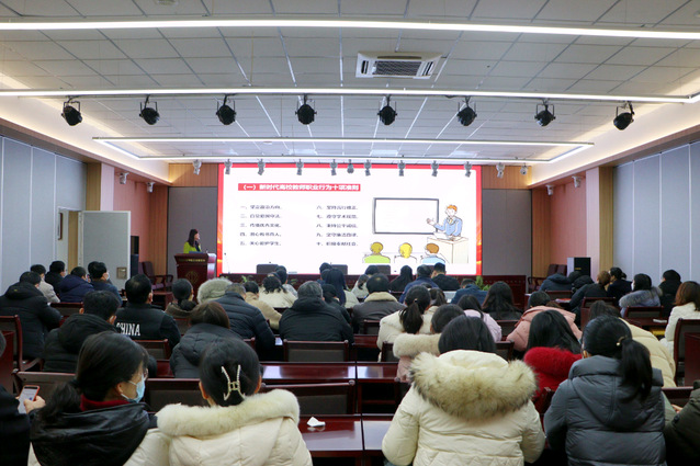 沈鹤军主要从新时代下的师德师风、新时代高校教师的行为准则、违反师德师风的典型案例和做“四有”好老师四个方面,阐述了如何做师德高尚、业务精湛的高素质好教师,同时带领教师们学习了高校教师“六禁令”、“红七条”以及“十项规定”。她勉励广大教师要坚持严于律己,以身作则,积极奉献社会,落实立德树人的根本任务;培养强烈的事业心和责任感,不断提高道德修养、提升教书育人的能力和水平,用爱心去追逐教育的梦想。