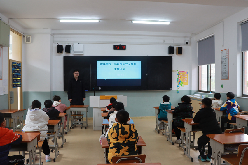 为确保在校学生人身安全和健康成长,针对小学生好动易发生事故的特点,2月20日至25日,附属学校小学部召开“开学安全第一课”校园安全主题班会。