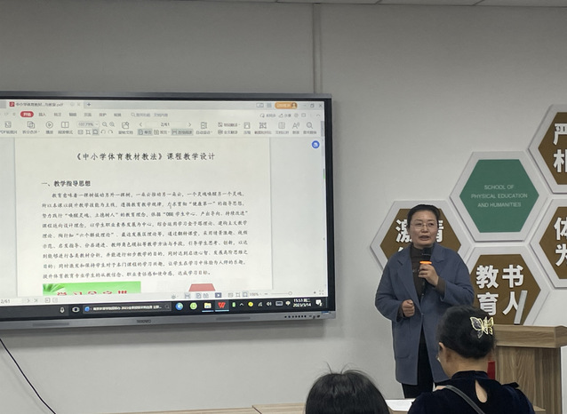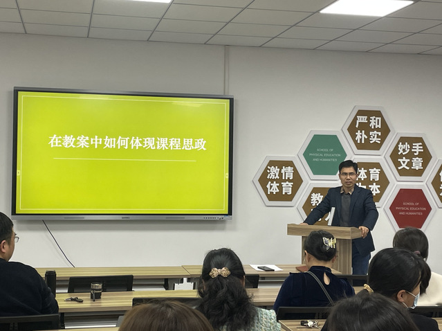 在校级最佳教案经验分享环节中,张忠老师以《在教案中如何体现课程思政》,结合自己的教学实际,着重介绍了将思政元素有机融入课堂教学各个环节的方法:一是关注人物生平,挖掘思政元素,二是结合教学内容,精心选择案例,三是弘扬传统文化,增强文化自信,四是依托已有文本,融入专业思想和师德教育。刘安琪老师从总体教学思路、单元设计思路和分课时教案案例三个方面谈了体会,侧重分享了教案撰写时的思路、教案内容的重点以及自己在教学时的经验,并且展示了她的优秀案例模版,给大家作为参考。侍崇艳老师结合《中小学体育教材教法》课程向大家展示了如何做教案设计。她指出,学生是主体,教学的目的是让学习发生,一堂好课的标准,就是能够与学生产生共鸣。教师对于课程的设计则需要关注两个方面:第一,教师要创造出学生对于学习的需求,采取多种手段满足学生的学习需求;第二,教师的教学活动要使学生有获得感。