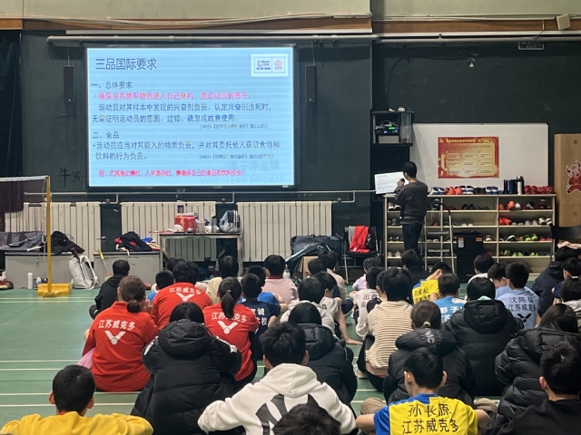 3月22日下午,羽毛球队组织所有在校运动员、教练员和辅助人员集中进行了反兴奋剂知识专题学习教育。