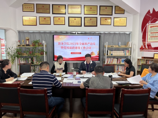 4月14日上午,游泳学院在跳水花游馆二楼会议室召开2023年全面从严治党暨党风廉政建设工作会议。学院全体管理干部参加会议。会议由学院党总支副书记(主持工作)骆晓娟主持。