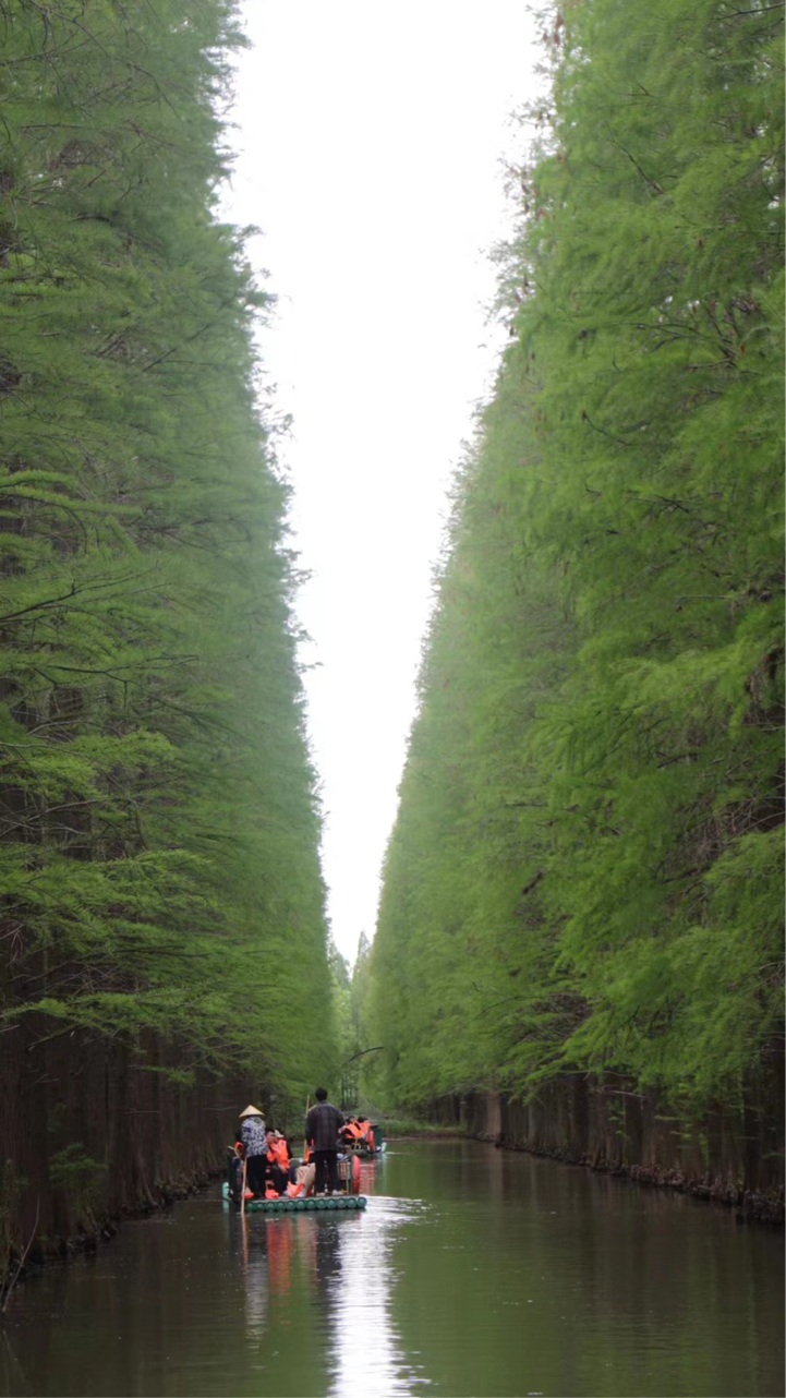 首先,大家游览了水上森林景区,这里被誉为江苏的“塞罕坝”。刚一下车,同学们便抑制不住激动的心情,成群结队地开始在这个天然氧吧游览。一直生活在车水马龙的城市之中,乍到此处,同学们的心情格外晴朗。在这里不仅能享受到自然风光,还可以体验到许多休闲娱乐设施,同学们表示丝毫感受不到无聊。