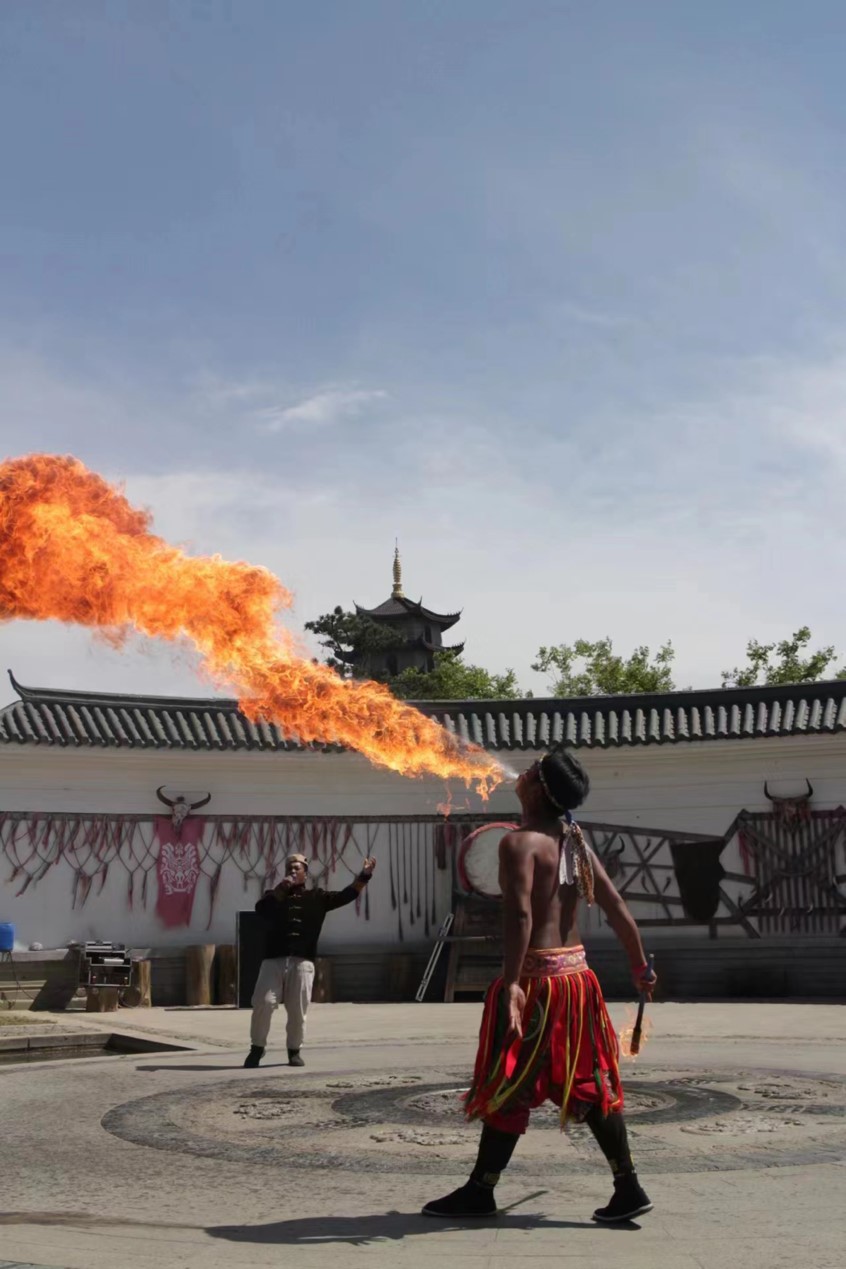 参观了自然风光之后,学子们接下来进入中国首个沉浸式文化体验区——尧想国文旅区,深入体验了这里的旅游文化。在这里,他们观赏了金湖本土的民俗表演。途中,大家目不转睛,全身心投入到这场精彩绝伦的表演之中。看完表演,大家都赞不绝口,为演绎者深厚的表演功底所折服,也对他们所穿的民族服饰表现出浓厚的兴趣。
