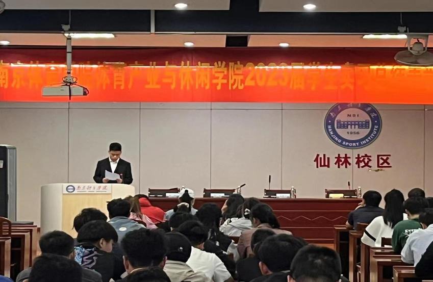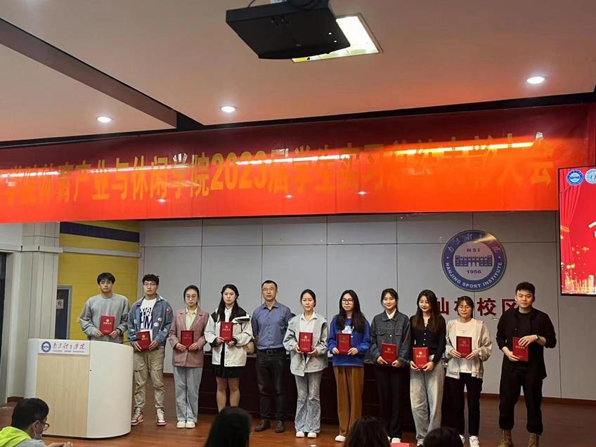 5月5日,体育产业与休闲学院在仙林校区大学生活动中心举行2023届学生实习总结表彰大会,对在实习期间表现优异的指导教师、学生进行表彰。体育产业与休闲学院党总支书记王进、院长王龙飞、党总支副书记陈志,副院长柏景岚,各系负责人、指导教师以及2023届全体学生参加会议。本次大会由柏景岚主持。