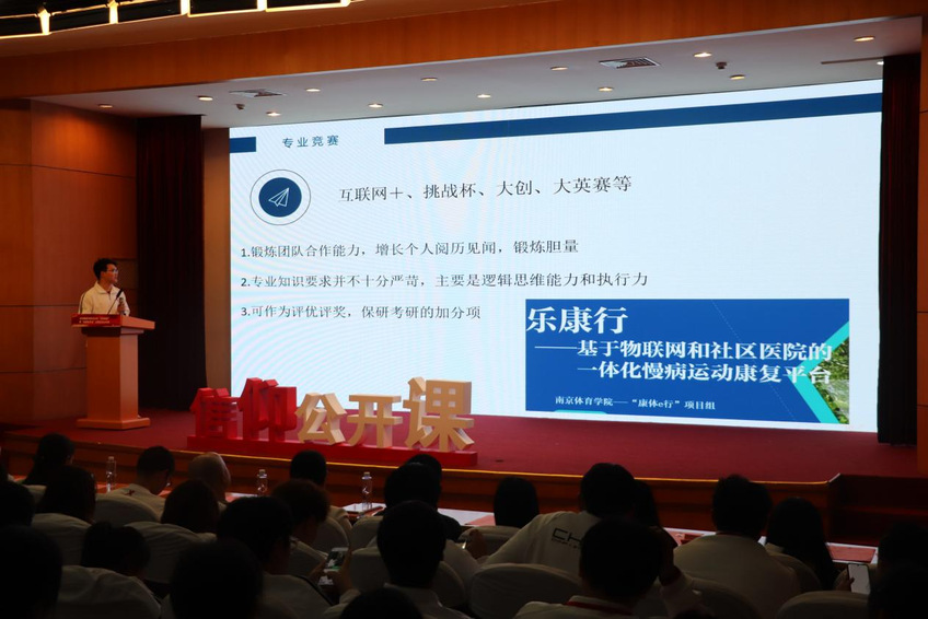 运动健康学院院长汤强为获省级“挑战杯”、职业生涯规划大赛、社会实践等奖项的代表颁奖