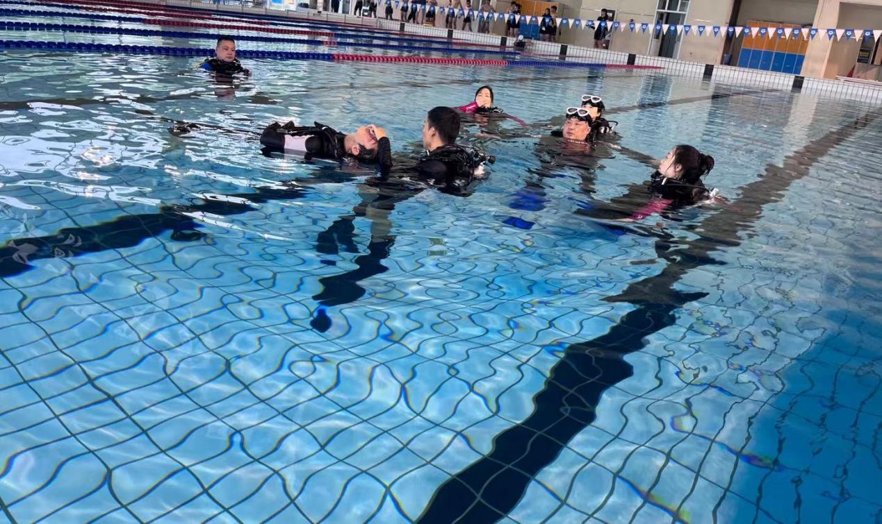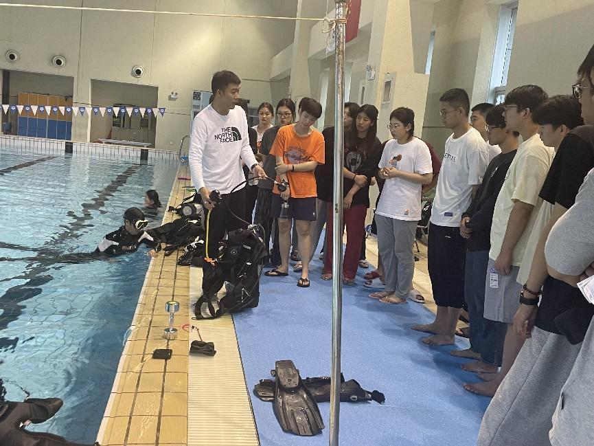 游泳馆的水上课观摩则更加生动有趣。吴元杰示范了蹼泳的动作和技巧,并对潜水实际操作中可能遇到的重点、难点问题作了说明,对突发情况的处理流程、应急状态下的安全反应进行了重点讲解。在最后的互动环节,吴元杰老师对同学们提出的问题一一作答。他表示,期待着更多的游泳爱好者加入到蹼泳的行列中来,共同推动蹼泳项目的发展。