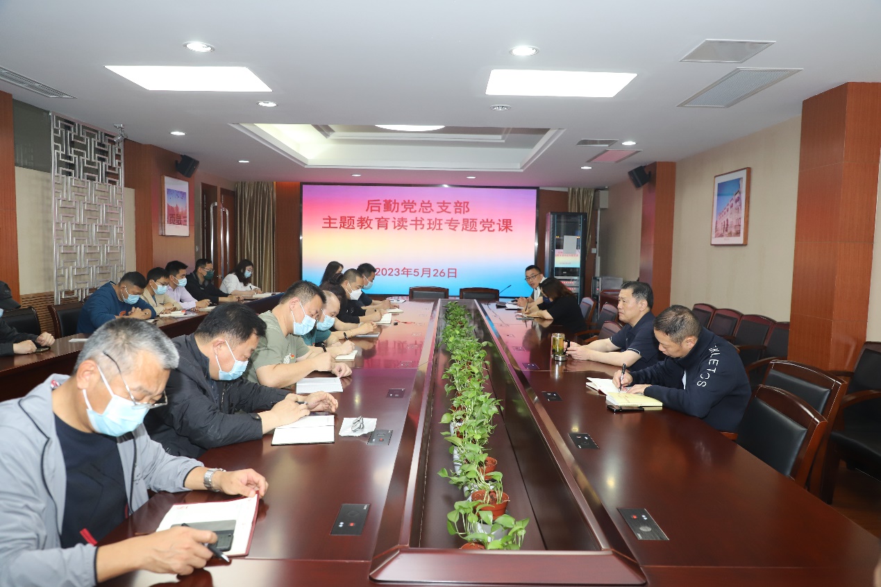 为深入贯彻主题教育“学思想、强党性、重实践、建新功”总体要求,深刻领会主题教育精神内涵,后勤党总支部开展主题教育读书班专题党课,进一步高扬思想旗帜,筑牢信仰之基,增强使命担当,全面提升后勤服务保障质量。5月26日上午,后勤党总支书记王寅在行政办公楼301会议室给后勤党总支全体党员讲主题教育专题党课。