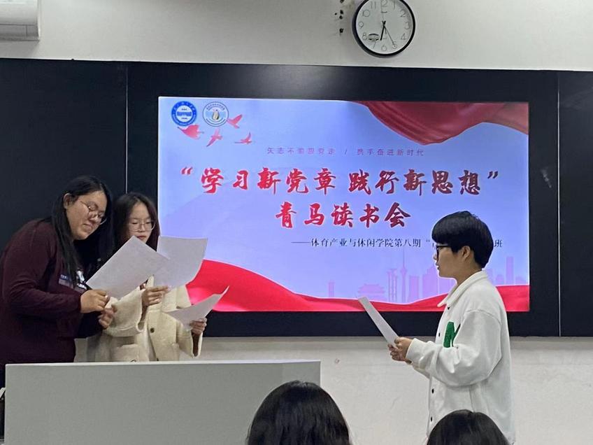 学院第八期青马班积极开展“学习新党章 践行新思想”青马读书会,带领学员们深入学习新修订的《党章》,进一步加强了同学们对中国式现代化、全过程人民民主、全人类共同价值等重要概念和教育、科技、人才等相关论断的认识,引导团员青年树立投身国家重大战略和到祖国最需要的地方建功立业的职业观和事业观。大家纷纷表示,要在日常生活中当好同学们的表率,发挥模范带头作用,始终牢记自己是社会主义建设者和接班人的根本任务,成长为有理想、敢担当、能吃苦、肯奋斗的新时代好青年。