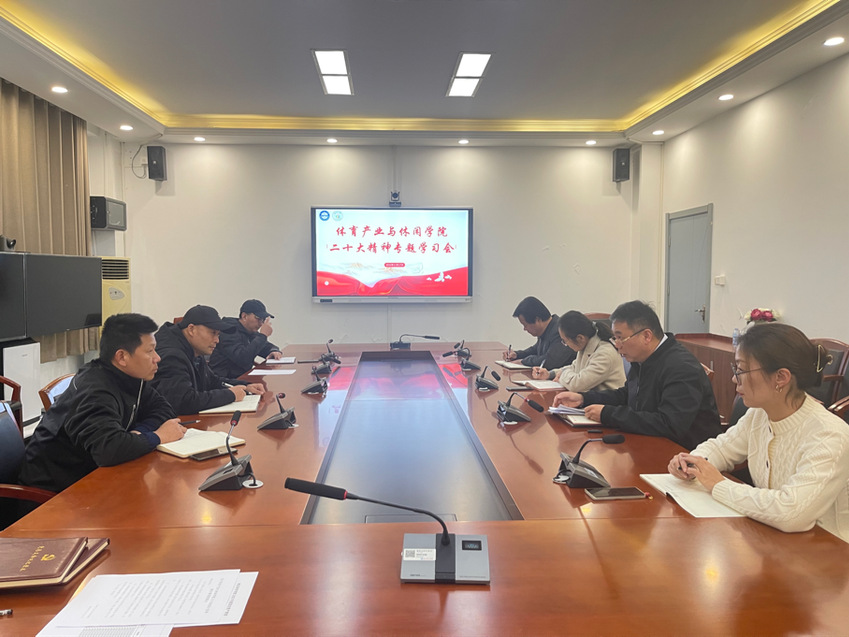 11月17日下午,体育产业与休闲学院党总支理论学习中心组在101会议室召开党的二十大精神专题学习会,党总支理论学习中心组成员参加学习,党总支书记王进主持会议。