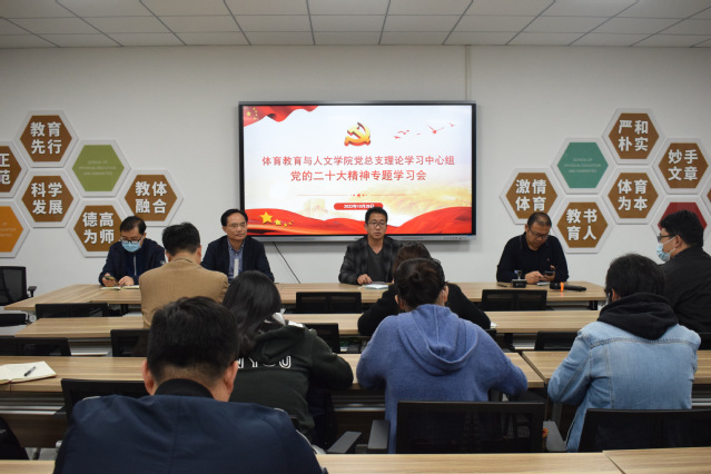 10月28日下午,体育教育与人文学院党总支理论学习中心组在教学办公楼220会议室召开党的二十大精神专题学习会。体育教育与人文学院党总支书记邹国忠、副院长(主持工作)王凯、副书记卢奎、副院长叶强,体育教育系教授彭国强,各支部书记及科级以上干部参加学习。会议由党总支书记邹国忠主持。
