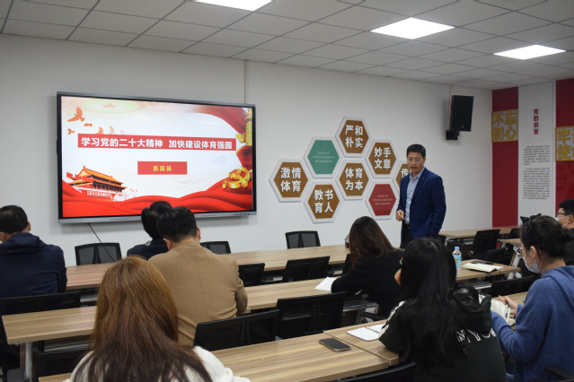 随后,体育教育系彭国强教授从学术角度作了题为“学习党的二十大精神 加快建设体育强国”的专题报告。彭国强教授通过剖析近三届政府工作报告中有关体育论述之变的深层涵义,揭示了党的二十大报告对体育论述的深刻内涵,并对建设体育强国提出了新思路。