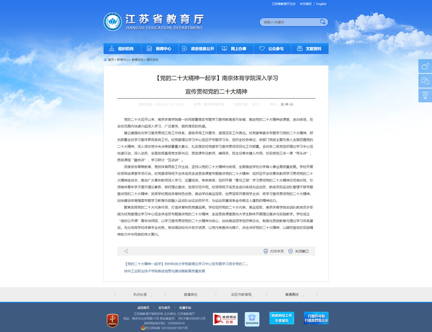 江苏省教育厅网站:【党的二十大精神一起学】36365最新线路检测中心深入学习宣传贯彻党的二十大精神