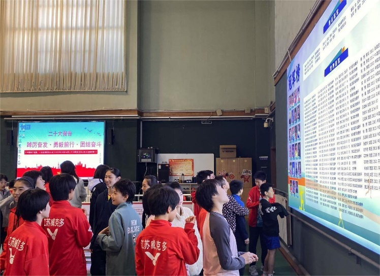 此外,为丰富活动内容和提升活动成效,乒羽学院专门制作了党的二十大精神宣传展板,组织广大运动员和教练员学习观看。运动员在参观学习后以问答、抢答和互动的形式,开展了精彩纷呈的党的二十大学习知识竞赛,切实将党的二十大精神学习贯穿于运动员思想政治教育之中。