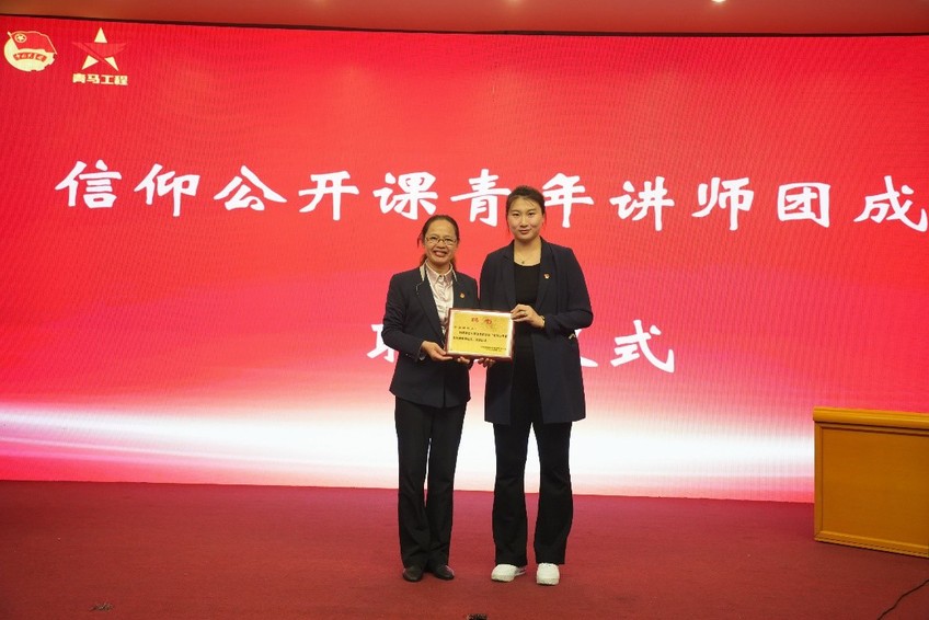 校领导李江向许安琪颁发信仰公开课青年讲师团聘书