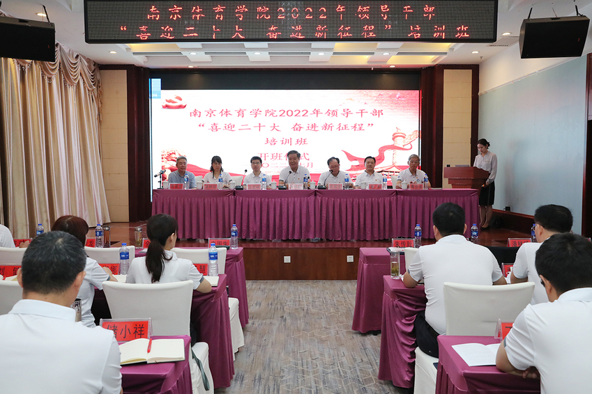 7月12日上午,36365最新线路检测中心2022年领导干部“喜迎二十大 奋进新征程”培训班开班仪式在遵义举行。校党委书记朱传耿,校领导史国生、兰亚明、金松、潘林珍、黄步龙和遵义干部学院党史党建教研部原主任张景宽出席仪式并在主席台就坐。史国生主持仪式。全校处级干部60余人参加了学习。