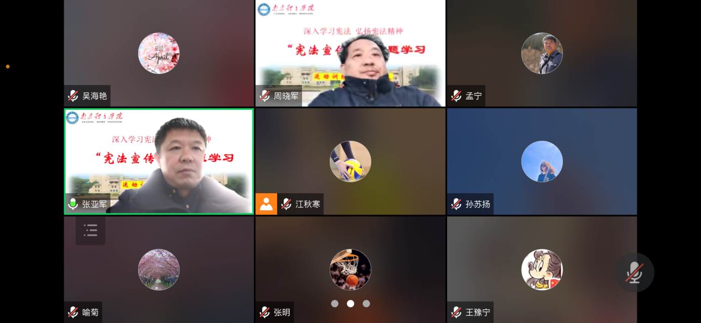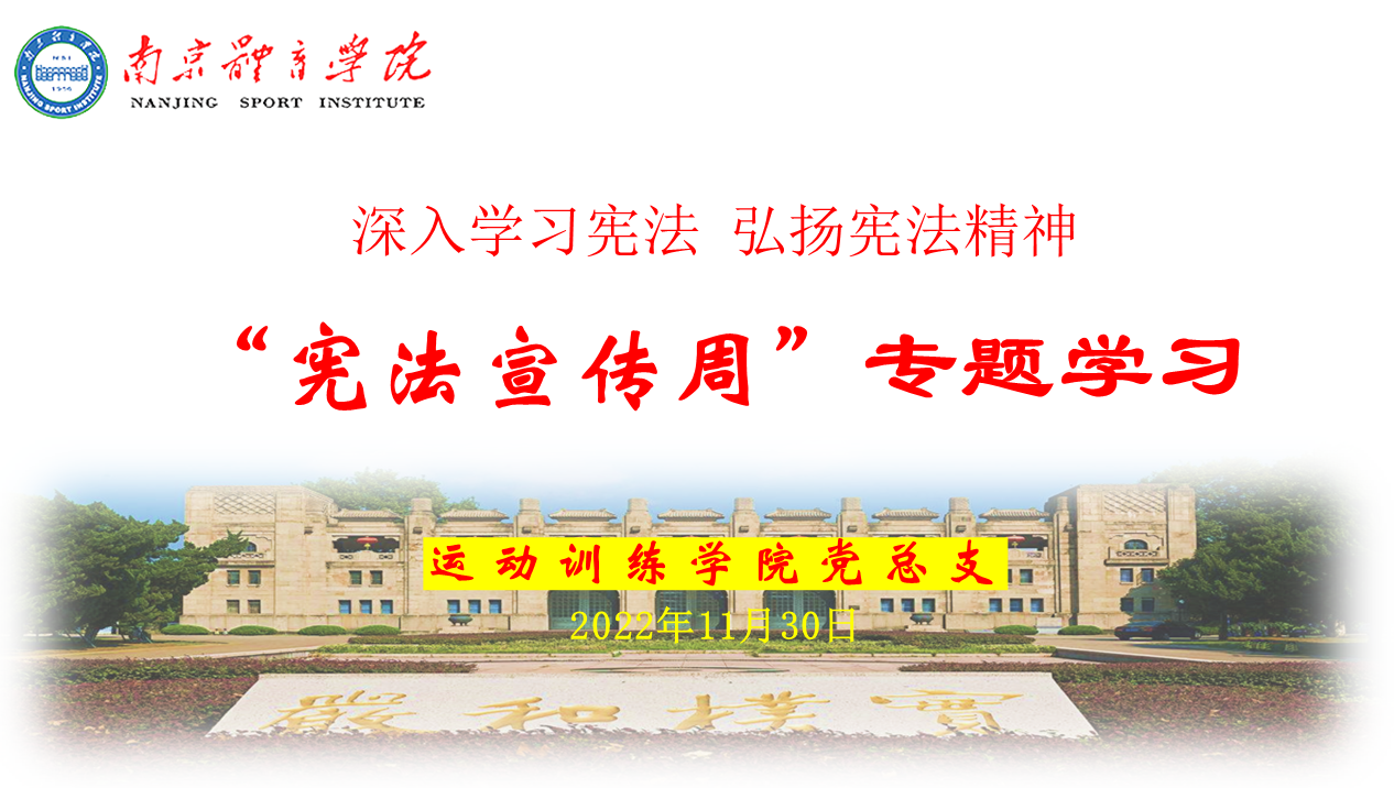 在现行宪法颁布施行40年,我国第九个“国家宪法日”和第五个“宪法宣传周”到来之际,运动训练学院结合学习党的二十大报告,于11月30日晚在线开展以“深入学习宪法 弘扬宪法精神”为主题的宪法专题学习会。专题学习由学院党总支书记张亚军主持。学院全体教职工参加学习。