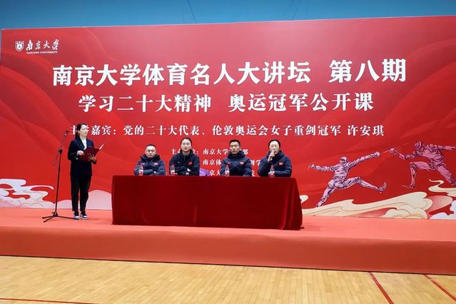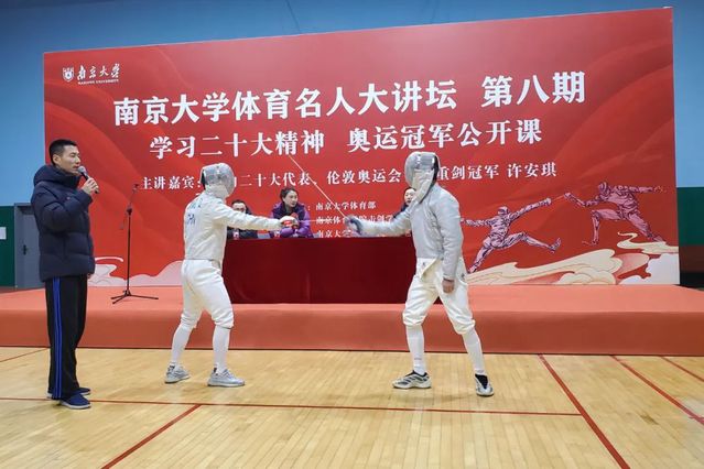 击剑学院本次赴南大参加体育名人大讲坛活动,既是支部党员二十大代表许安琪积极宣传二十大,结合参会经历宣讲二十大精神,也是学院积极参与服务社会、回馈社会,全体推广击剑项目运动与体育文化的有力举措。