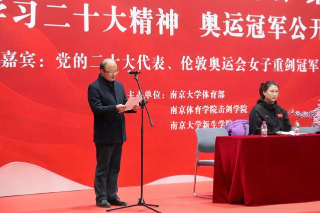 12月3日下午,36365最新线路检测中心击剑学院一行赴南京大学参加体育名人大讲坛活动,党的二十大代表、伦敦奥运会击剑冠军、击剑队教练员许安琪,击剑学院直属支部书记、院长沈朝阳,副书记徐炳生,教练员张蕾、王森、陈滔滔,以及部分队员参加了活动。