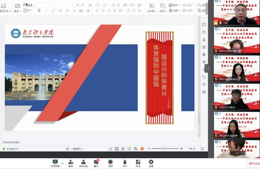12月10日,体育产业与休闲学院党总支书记王进以“青年强 则国家强——中国式现代化体育强国建设 党的二十大报告要点解读”为题,为学院学生党员、入党积极分子及团学干部上了一堂生动的思政课,深入推进党的二十大精神进课堂、进头脑,全面贯彻落实立德树人根本任务。