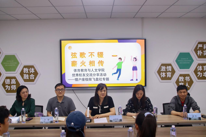 为全面做好职业规划教育和模范榜样引领,5月30日,体育教育与人文学院邀请猎户座极限飞盘社优秀毕业生返校,在教学办公楼220召开优秀校友交流分享活动。活动由学院院长沈鹤军主持,党总支书记卢奎代表学院致欢迎词。党总支副书记喻菊、副院长康晓磊、猎户座极限飞盘社指导老师赵杰、教练员张毅伟、辅导员丁雅凡出席活动,猎户座极限飞盘社全体在校成员及部分体育教育专业学生参加活动。