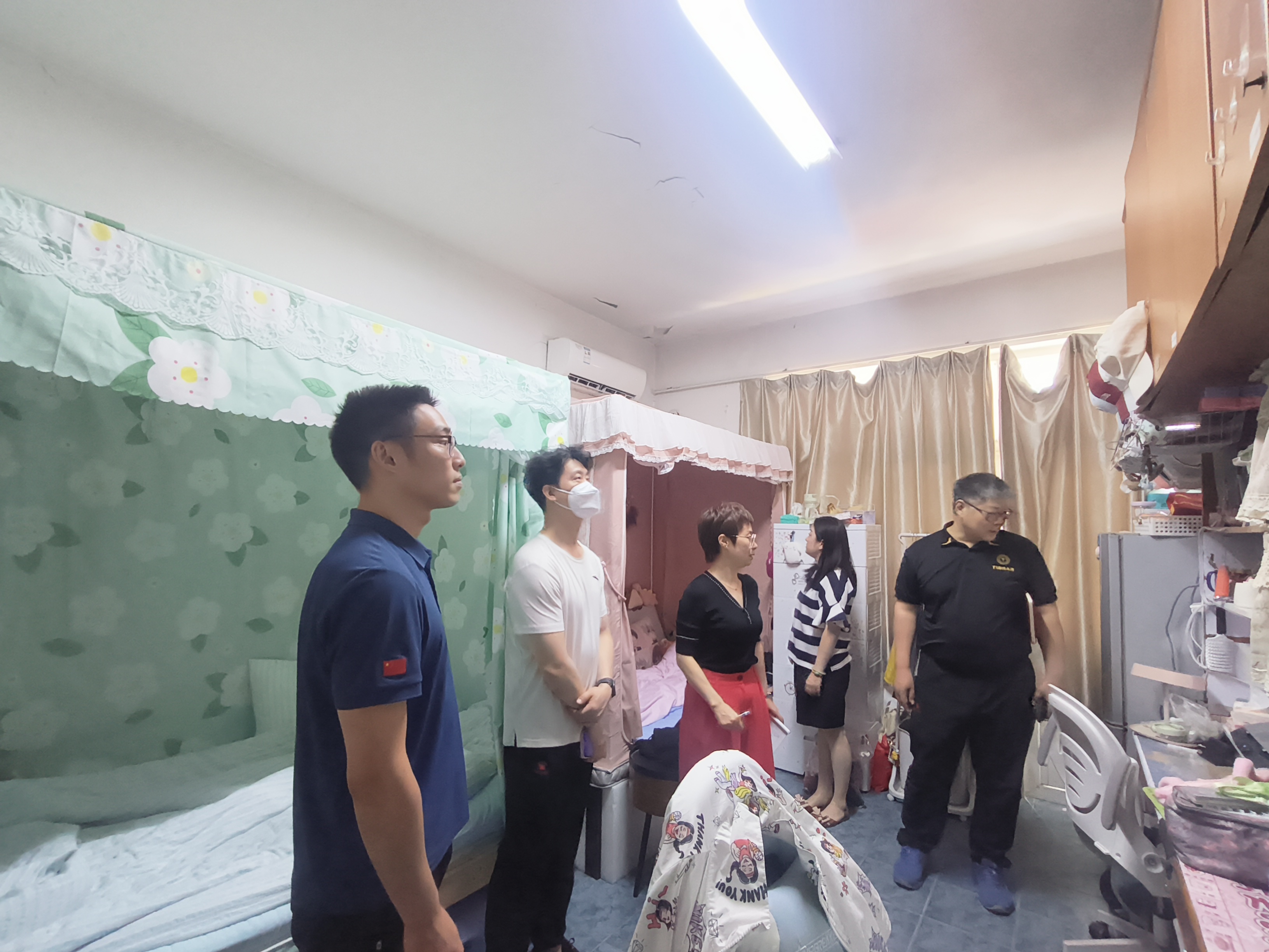 6月2日上午,体操学院党总支书记叶瑛带领运动队管理干部到公寓重点检查运动员“三品”使用情况。