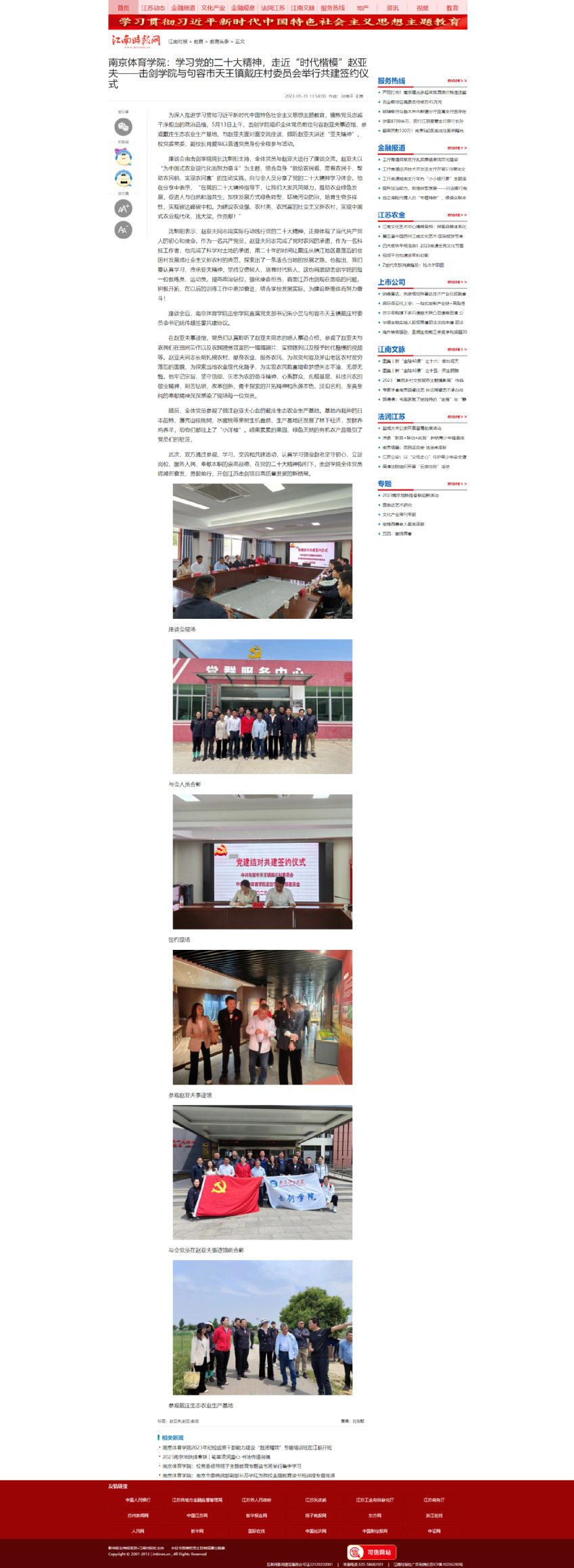 【江南时报】学习党的二十大精神,走近“时代楷模”赵亚夫——击剑学院与句容市天王镇戴庄村委员会举行共建签约仪式