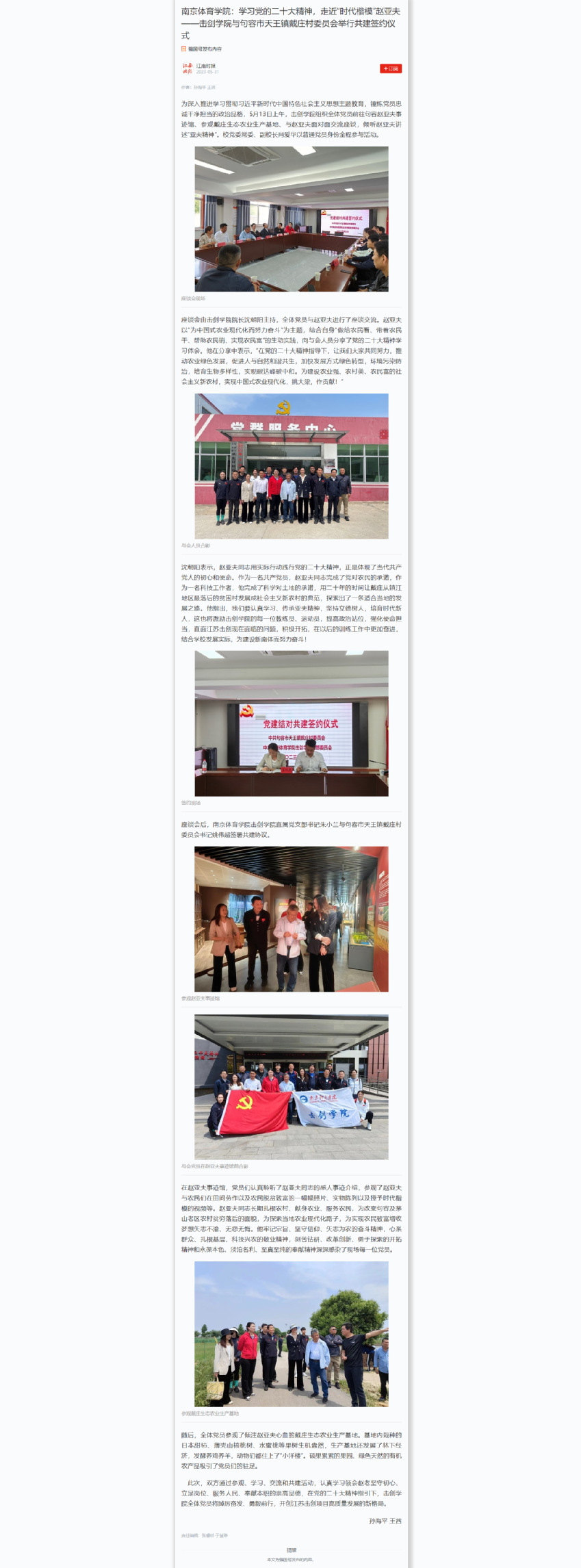 【学习强国】学习党的二十大精神,走近“时代楷模”赵亚夫——击剑学院与句容市天王镇戴庄村委员会举行共建签约仪式