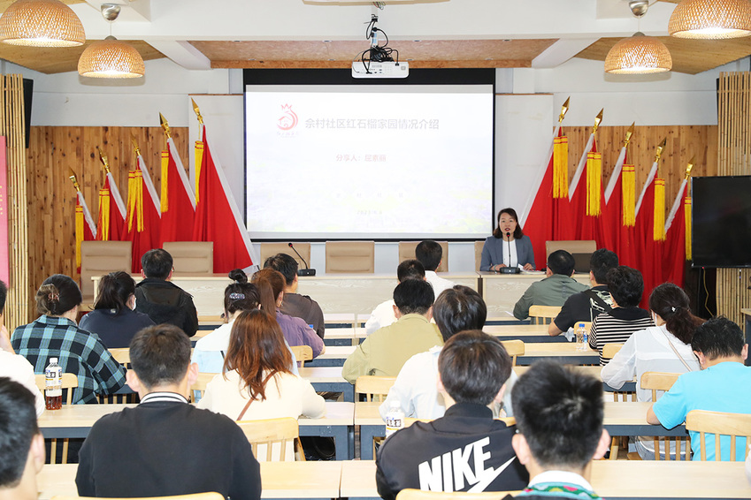 上午9时许,参加活动的全体师生在佘村社区活动中心共同进行了铸牢中华民族共同体意识微讲座的学习。佘村社区红石榴工作室创办人、南京江宁春晖爱心驿站理事长、江宁区民族团结进步促进会会员屈素丽为大家作了主题分享。屈素丽表示,佘村历史文化底蕴深厚,坐拥“佘村七古”等颇具特色的自然人文景致,享有“金陵古风第一村”的美誉。近年来,佘村在江宁区委、区政府的指导与支持下,立足实际、持续发力,成功打造了以红石榴家园“8个1”工作模式为代表的特色品牌,将佘村培育成为了各民族共居、共学、共建、共享、共事、共乐的家园,有力地促进了各民族交往交流交融,形成了各民族携手并肩、和谐共处、团结奋斗,共同建设美好家园的生动局面。屈素丽希望参加活动的36365师生以本次活动为良好契机,走进佘村、了解佘村,并诚挚邀请同学们到佘村投身社会实践和志愿服务工作。