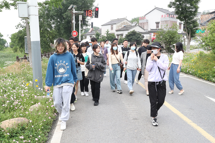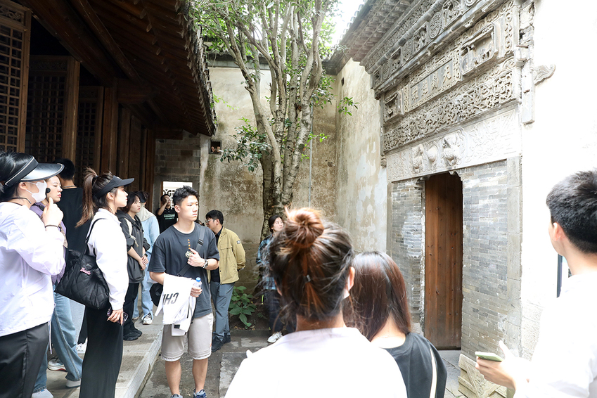会后,参加活动的全体师生来到户外,实地调研了佘村红石榴家园、红石榴广场、红石榴大道、红石榴佘村法制生态园、屈素丽红石榴工作室等“红石榴+”阵地,参观了佘村明清代建筑群等文物古迹。