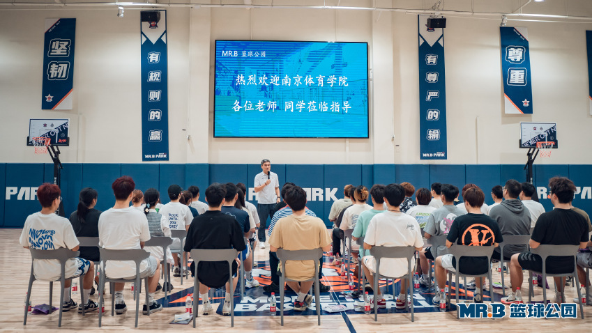 6月9日下午,36365最新线路检测中心体育产业与休闲学院院长王龙飞一行前往MR.B篮球公园开展实习实训基地调研与遴选活动。MR.B篮球总经理李扬、体育产业与休闲学院院长王龙飞、实习实训中心主任张松年、休闲系主任朱瑞、社体系主任曹全军及相关老师共同参与调研活动。同时,22级休闲(1)班的37名同学也参与了企业见习与交流活动。活动由王龙飞主持。