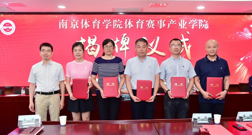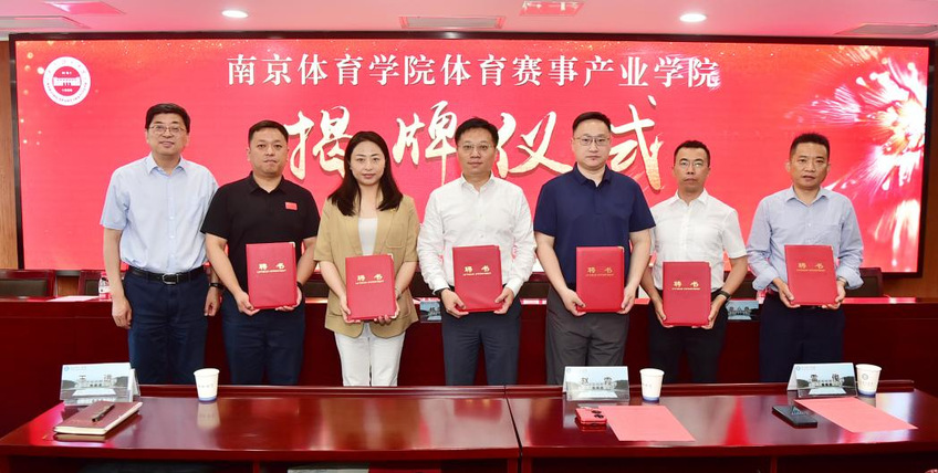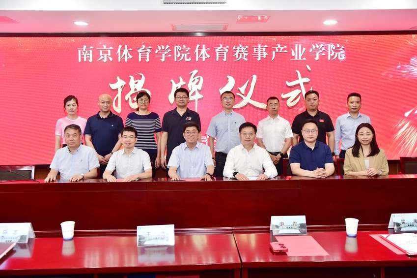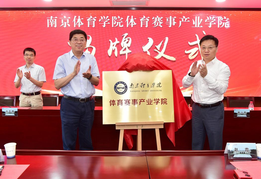 36365最新线路检测中心校长杨国庆、南京体育产业集团有限公司董事长章小奇为体育赛事产业学院揭牌