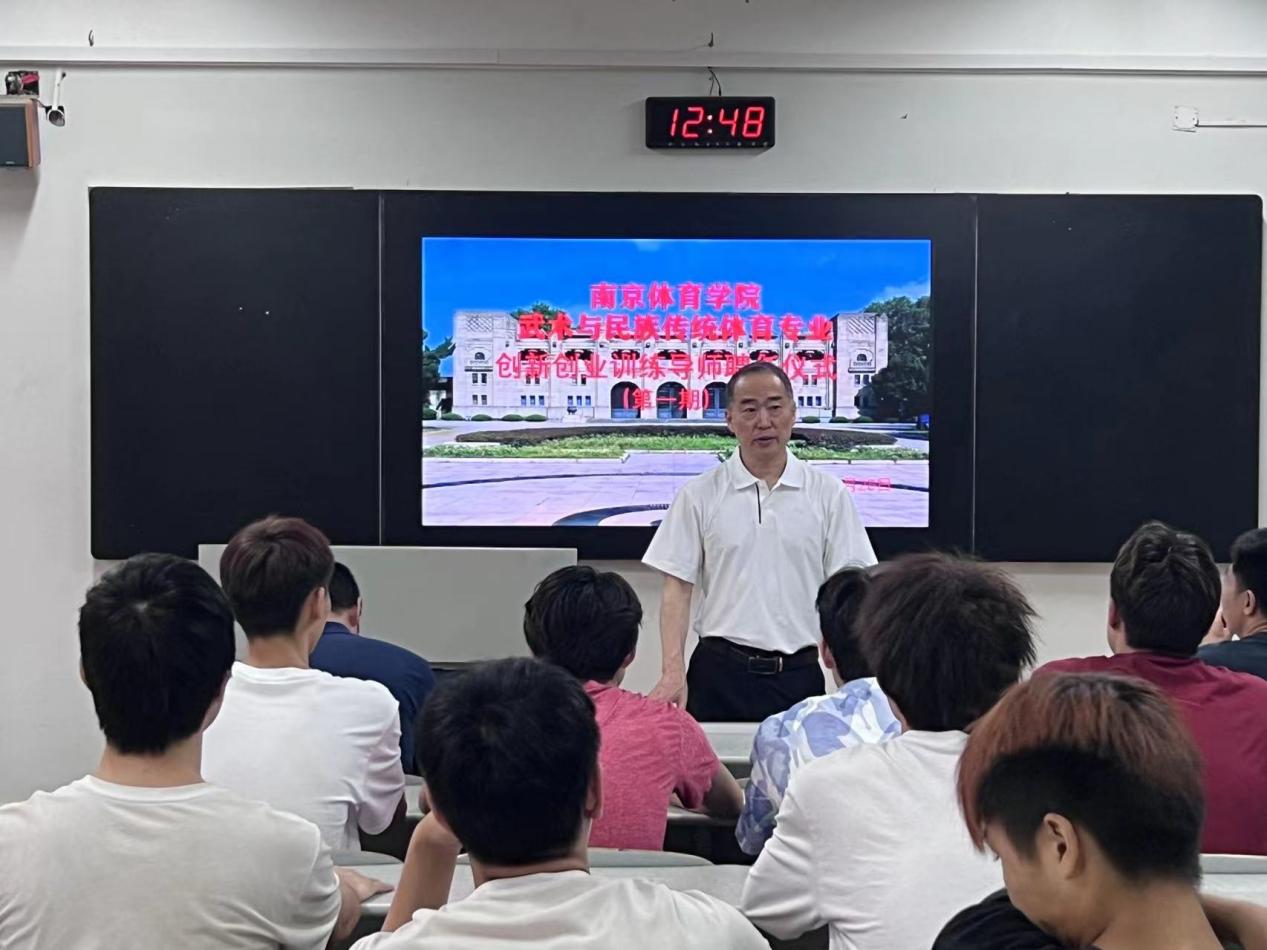 为了提高武术与民族传统体育专业学生创新创业能力,促进专业人才培养及传统体育文化的现代化推广。6月26日中午,武术与民族传统体育专业训练导师受聘仪式(第一期)在教学楼举行,武术与艺术学院副书记杜家俊,武术与民族体育专业教师及学生参加受聘仪式。武术系主任刘靖主持受聘仪式。