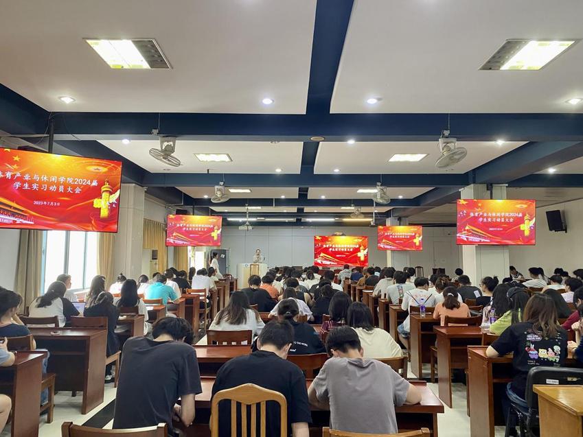7月3日,体育产业与休闲学院在仙林校区大学生活动中心召开2024届实习动员大会,体育产业与休闲学院副院长柏景岚、各系正副主任、教学秘书、2024届辅导员、班主任以及全体学生参会。柏景岚主持会议。